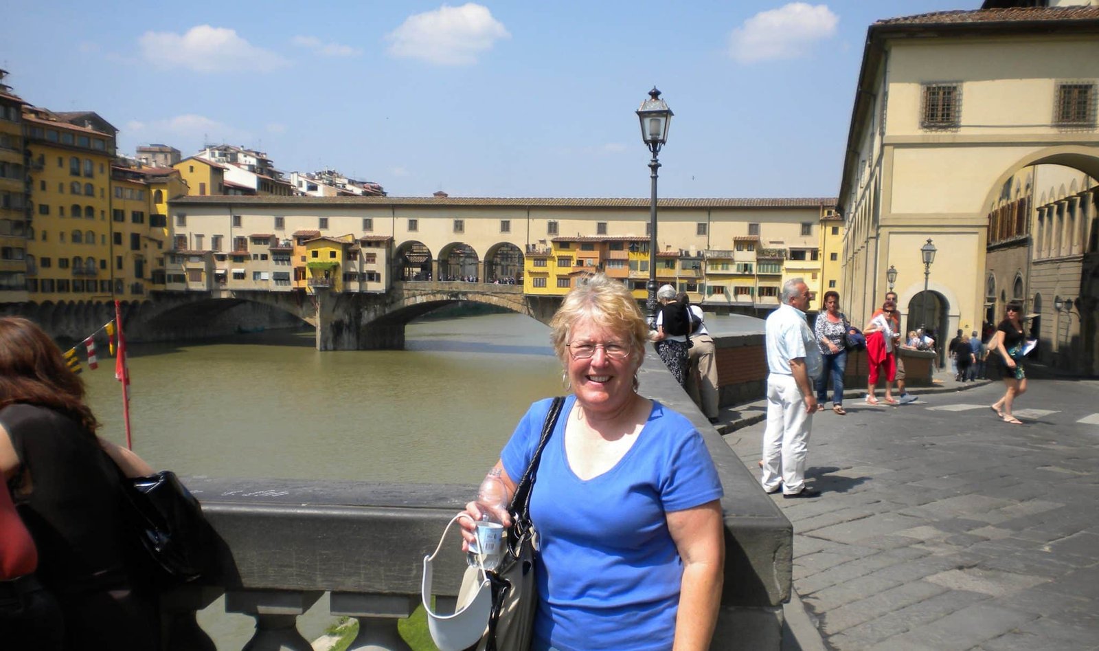 I could ring his neck when he does that. I never went over the bridge on the race to keep up with the tour group but did get to later when I was back in Florence. Another photo of me looking slightly disheveled after taking my hat off and hastily trying to get my hair in some sort of order.